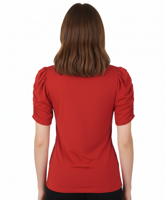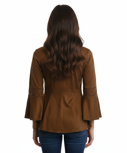 Ryu: Lace Detail Faux Suede Top, Burgundy