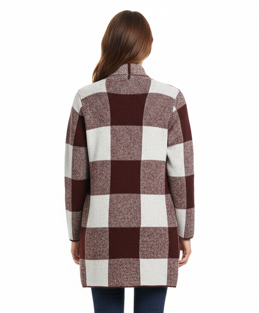 Staccato Open Front Long Sleeve Plaid Sweater