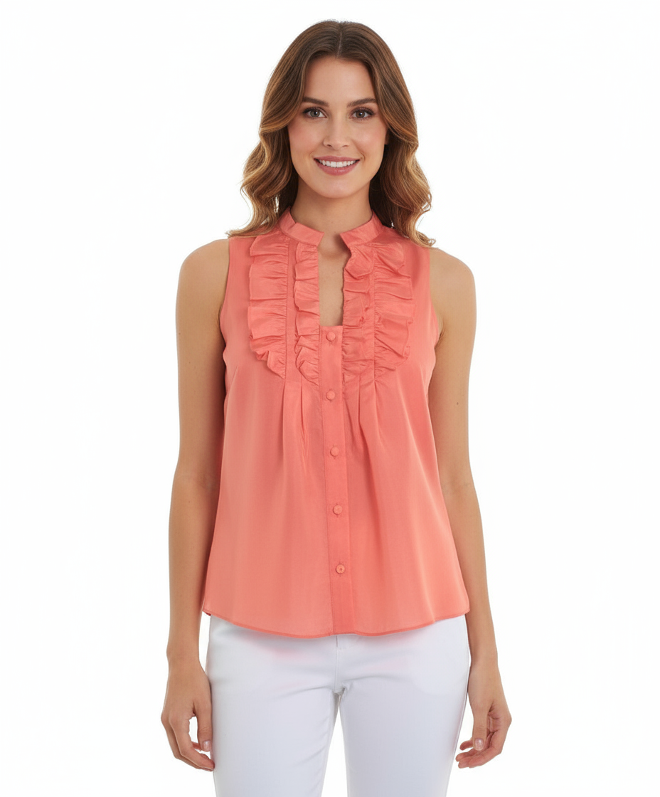 - Sleeveless, button-down blouse.